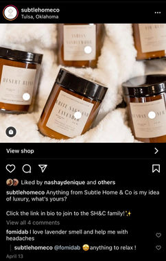 As a Freelancer I've worked with various small businesses as a Social Media Manager and content creator. Examples: SkylaK Kloset, Subtle Home & Co, Sight of She, Luv By Mo, etc.